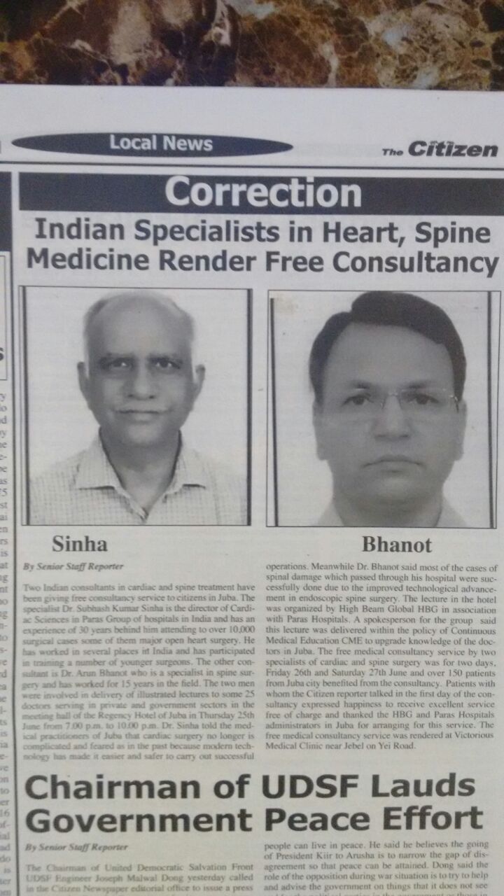 December 14, 2017 Event Free Consultancy Services in Juba, South Sudan Dr S K Sinha, Director at Max Smart Super Specialty Hospital, rendered Free Consultancy Services in Juba, South Sudan By admin 0